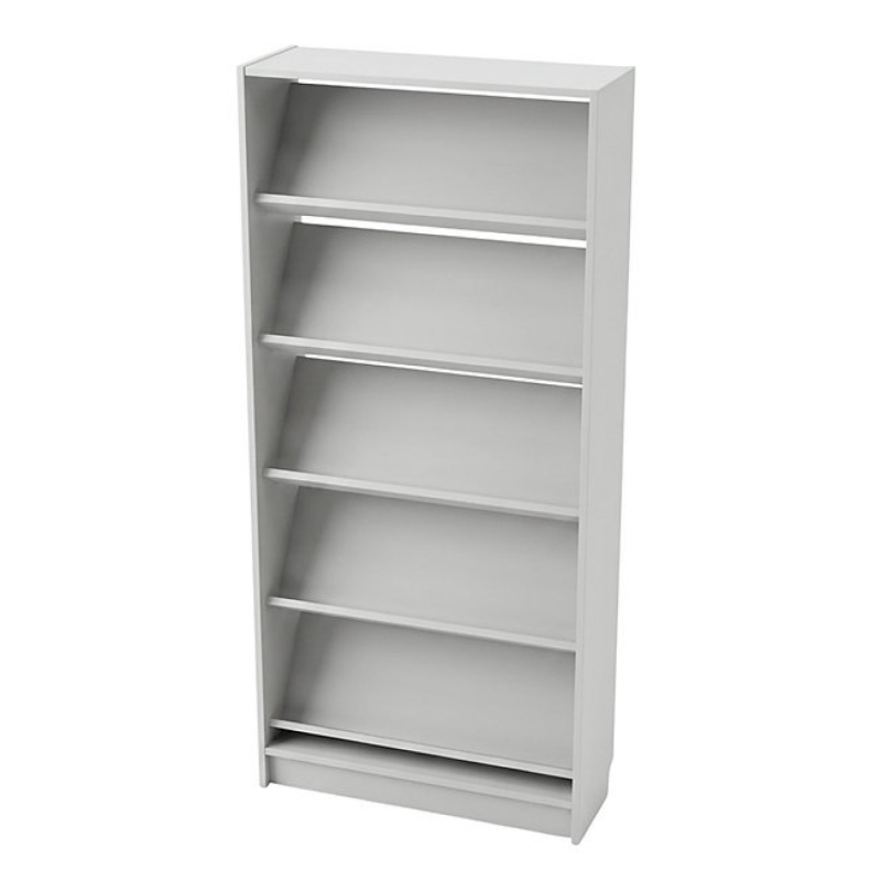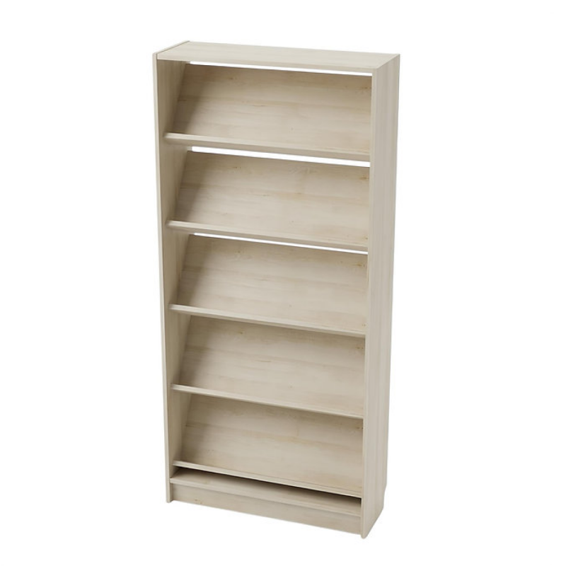 - Стеллаж оснащен 5 наклонными открытыми полками.