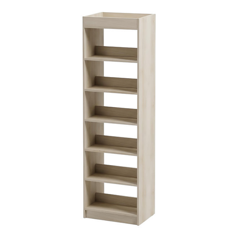 - Стеллаж оснащен шестью открытыми двусторонними полками.