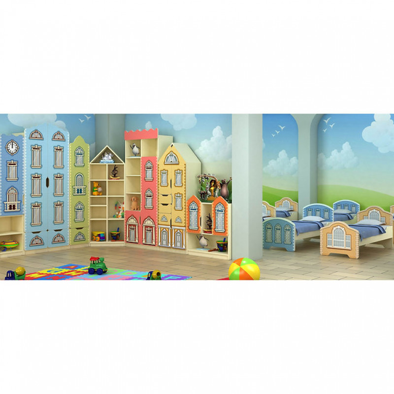 Детская кровать с закругленными боками, с фотопечатью Старый город.