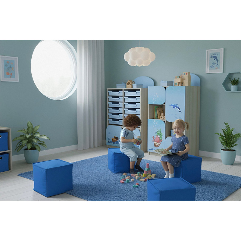 - Дверцы шкафчика фигурные со специальной выемкой для открывания и декорированы водоустойчивой фотопечатью с изображениями морской тематики.