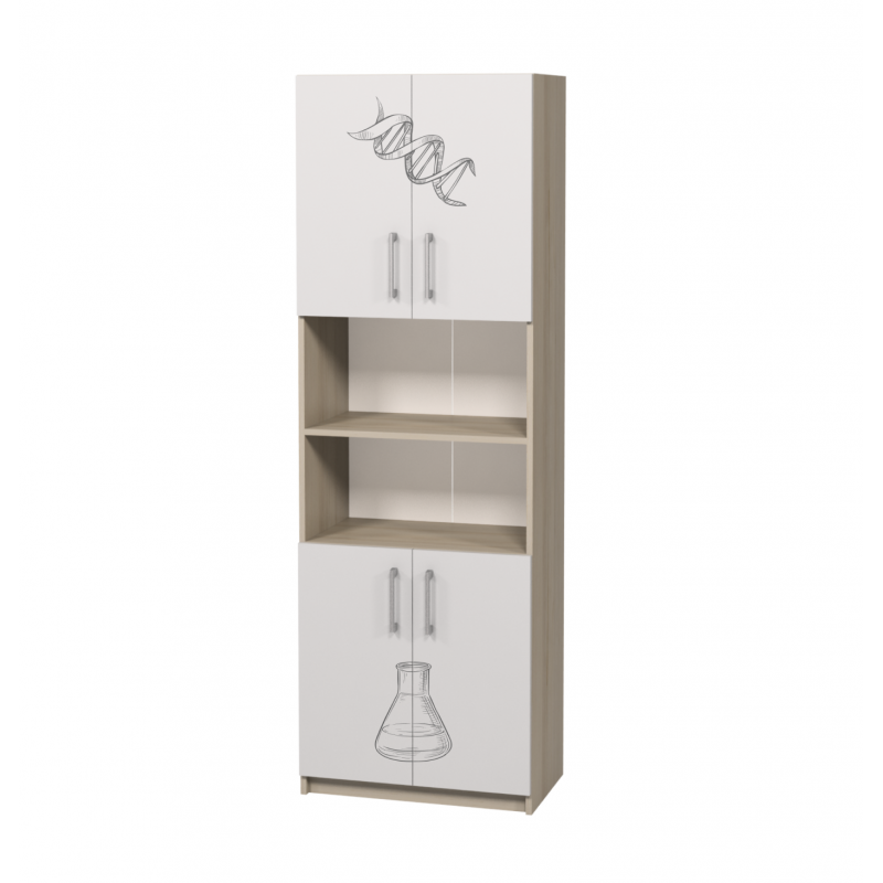 Шкаф полузакрытый с четырьмя дверцами и двумя открытыми полками