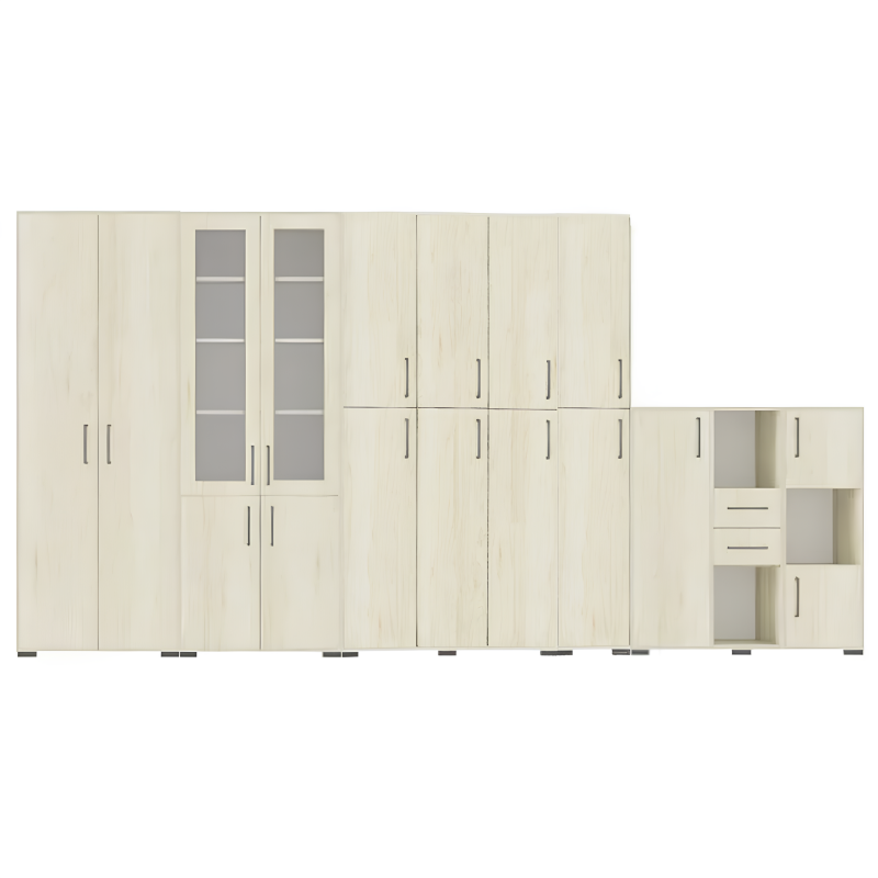 - 5 - Шкаф офисный. Шкаф имеет три дверцы, три открытых полки и два ящика на направляющих полного выдвигания.