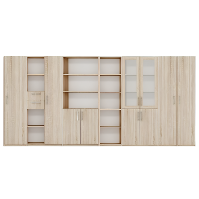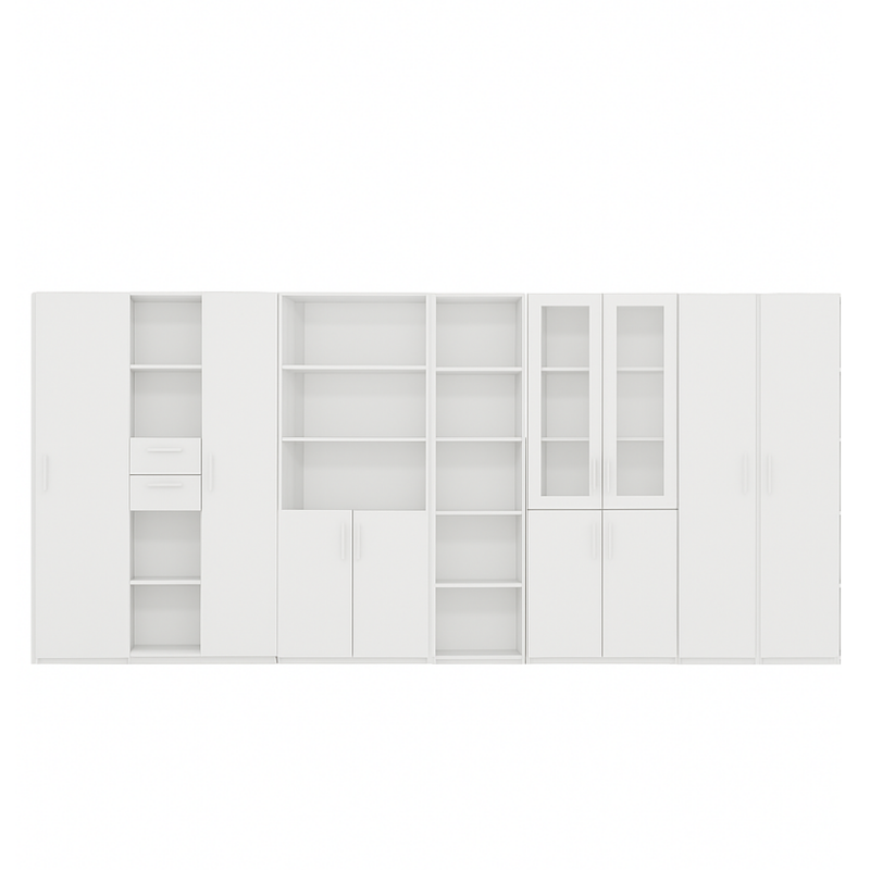 Комплект шкафов позволяет приобрести все элементы вместе и при желании менять их расположение.