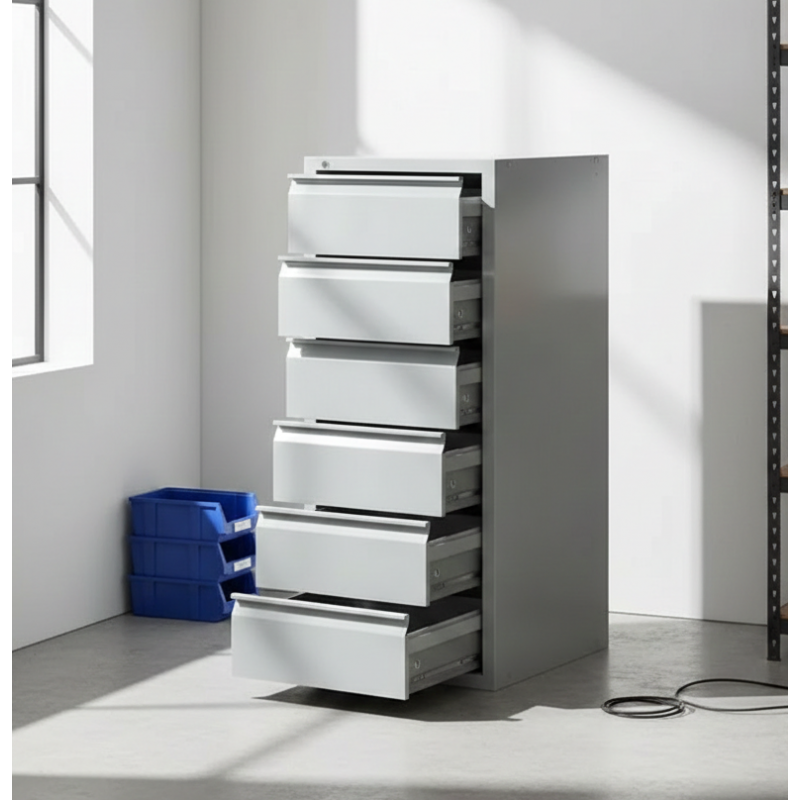 - Архивный шкаф имеет 6 выдвижных ящиков.