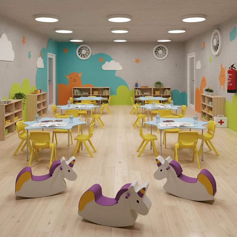 - Качалка "Единорог" способствует развитию двигательной активности у детей, стимулирует вестибулярные функции, укрепляет мышцы.