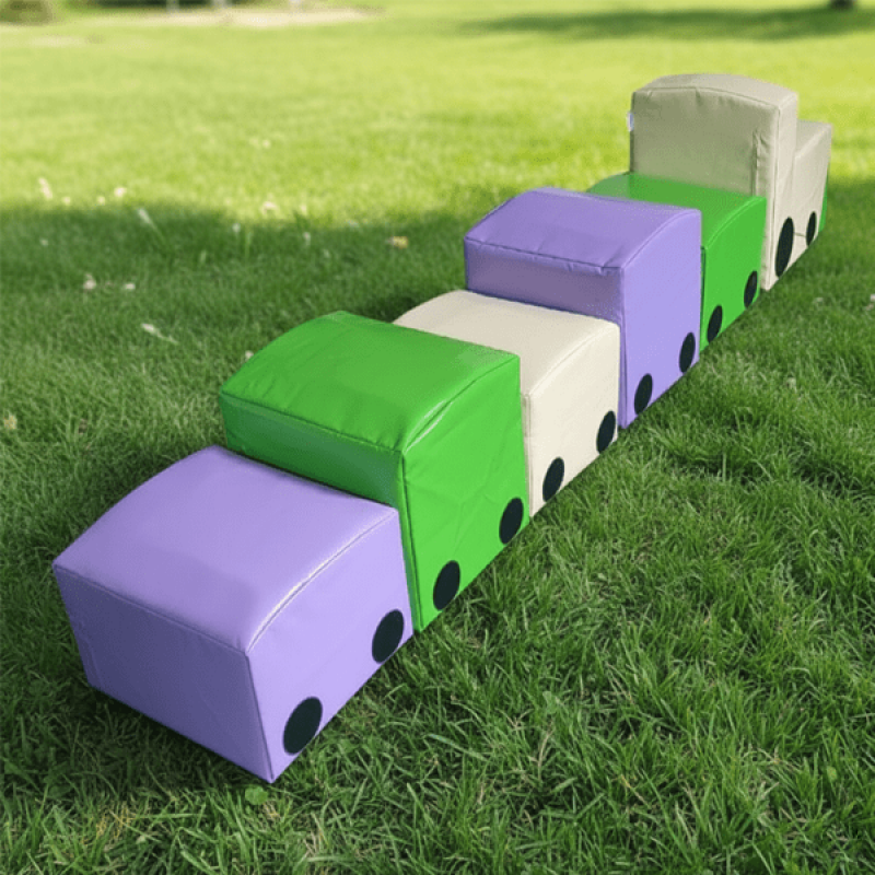 - Сделан набор "Паровозик" из плотного поролона и обтянут мягкой, приятной на ощупь тканью, которая, к тому же легко моется.