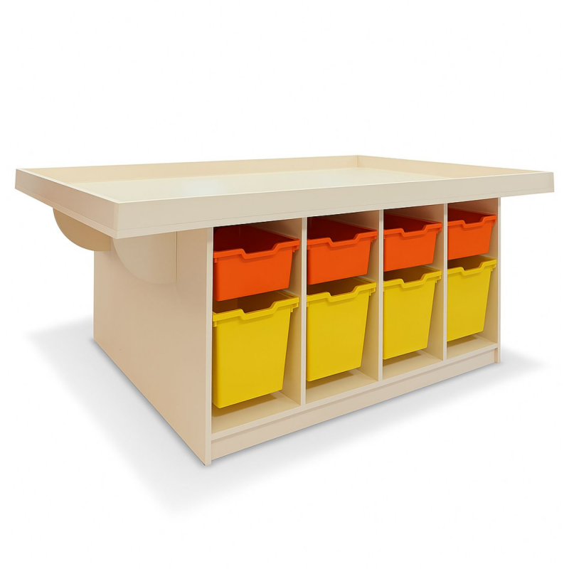 Masă pentru activități practice cu cutii de depozitare